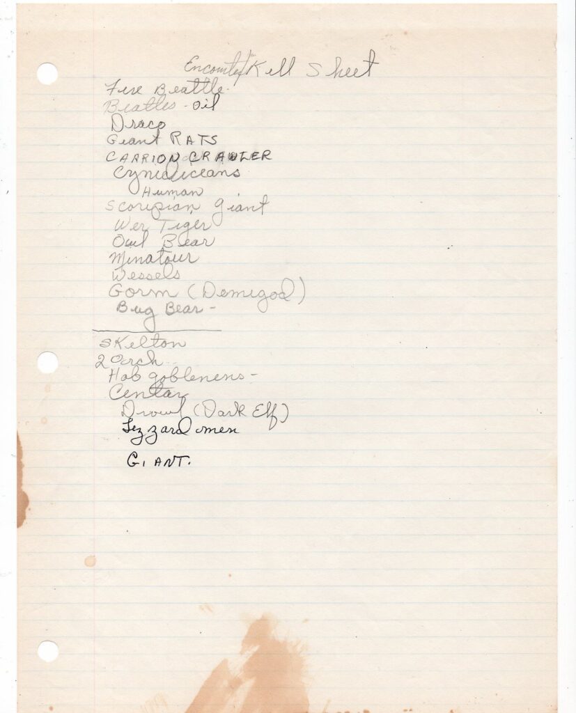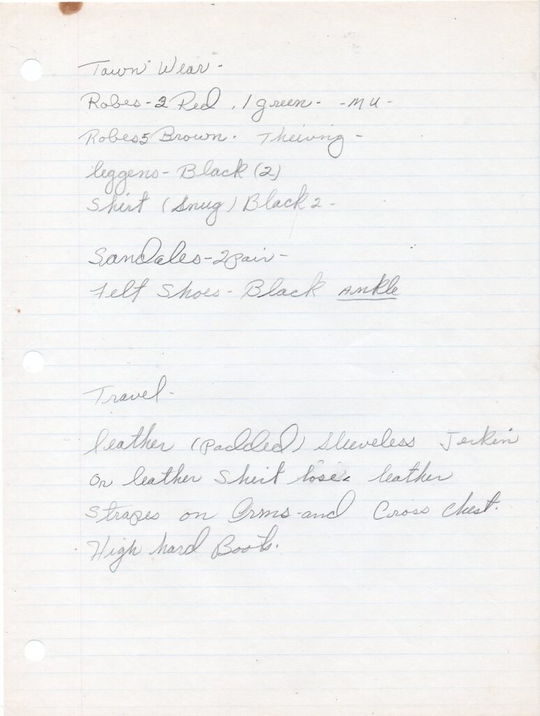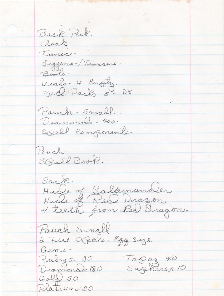 About: This is part of a collection of gaming notes left behind by my mother when she passed in 2020. Mom was an avid table-top role player, starting her adventures in the late 1970s and continued for as long as she could find a game. I’m slowly making my way through these papers and posting them as I uncover them.