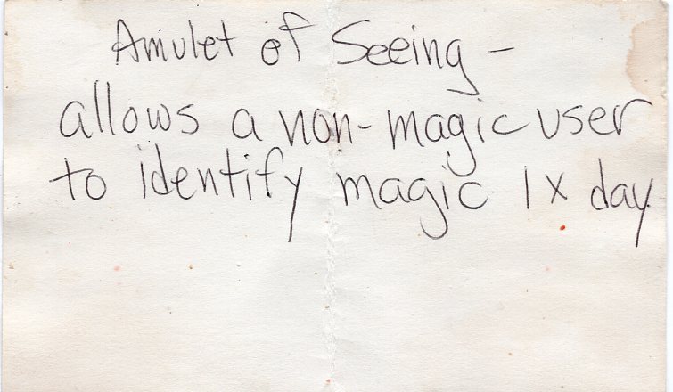 Amulet of Seeing (small note)