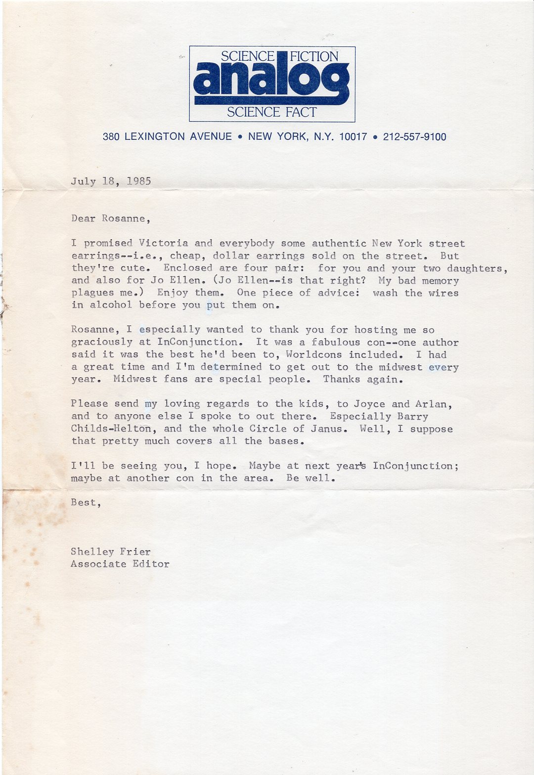 About: This is part of a collection of notes left behind by my mother when she passed in 2020. Mom was a long time science-fiction convention attendee and volunteer, starting in the late 1970s. She ran registration, hospitality suites and chaired a few conventions.